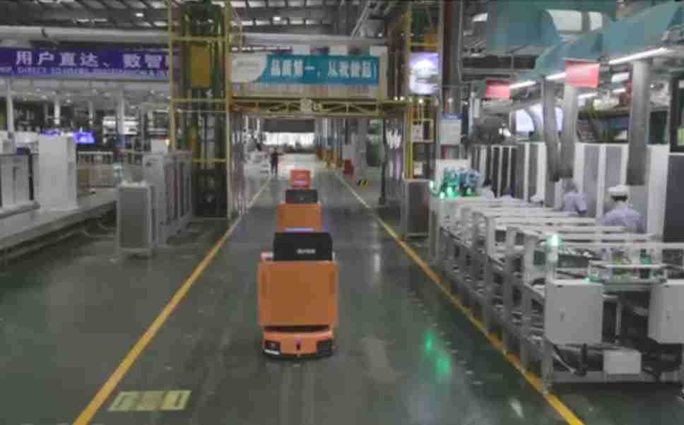 为车载冰箱物流配送打造的智能解决方案,,包含产中物流通过潜伏举升AMR搬运至线边,,产后成品物流智能仓储,,,流程包含产中物流智能齐套入库,,,线边安灯叫料AMR智能配送至线边,,,,成品入库、、、、出库,,,,通过无人堆高车机器人,,智能仓储管理替代人工作业管理,,,实现更高存储、、更高效率、、更具柔性化的解决方案。。